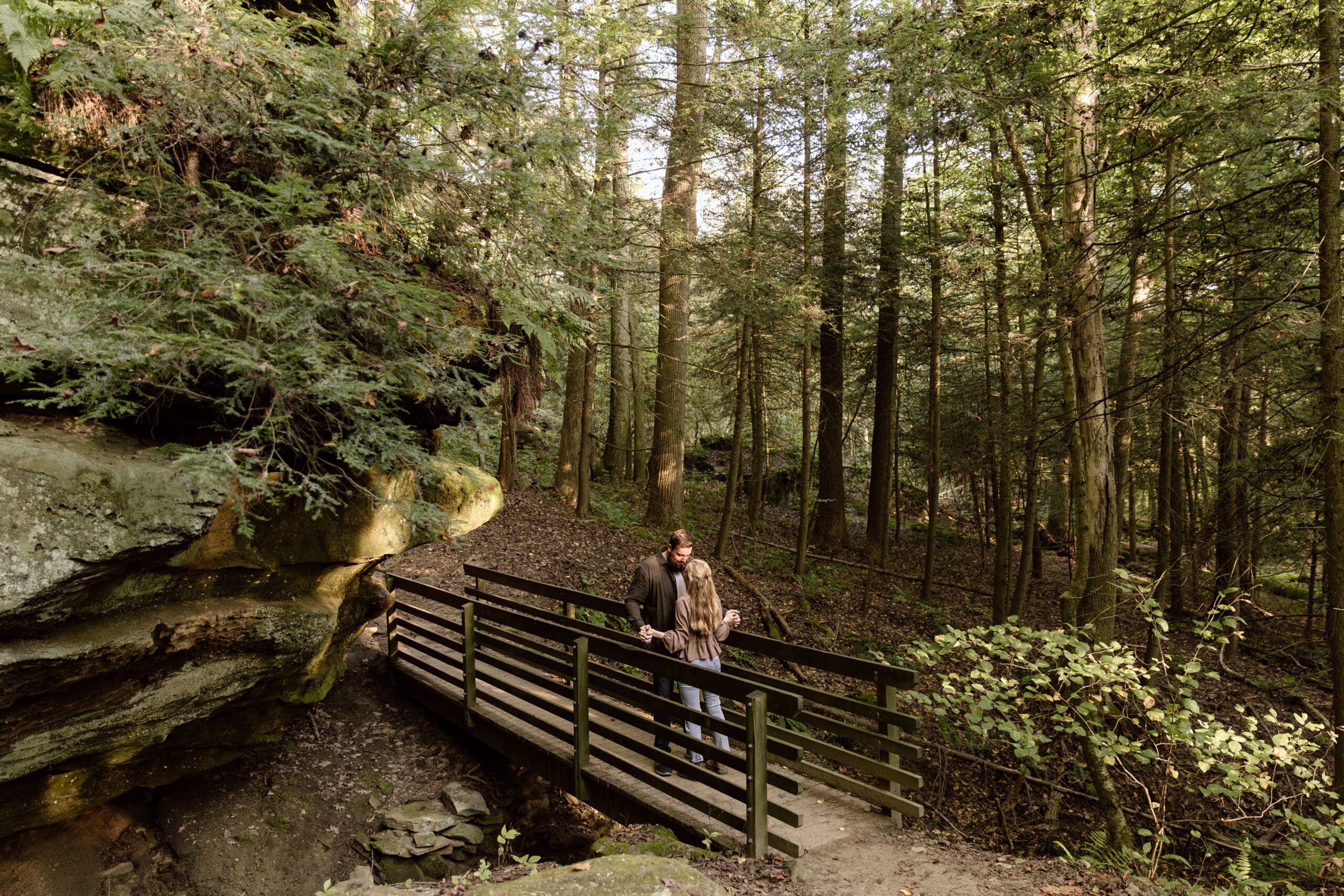 S & R let me know they love hiking local trails in Northeast Ohio, so we decided on the Ledges trailhead for their Cuyahoga Valley National Park engagement photos. Ledges is an excellent location for couples sessions, and feels especially epic for engagement and wedding photos. The scenery is so diverse, from rock formations, to sprawling meadows, to wooded trails.